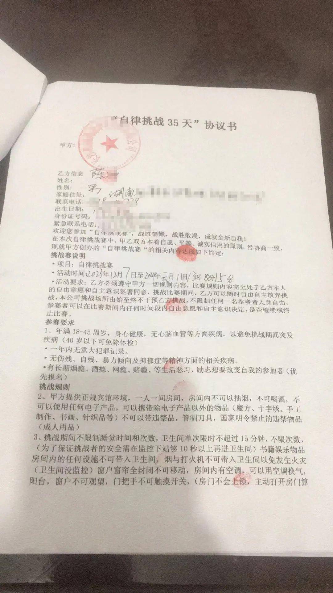 20日12月,正在长沙职责的陈先生潇湘晨报记者相干到。默示他,多天前10,该公司的流传视频他正在网上看到了,战者进入公司支配的一栈房房间称推出“自律挑衅”项目:挑,监控下正在全程,不玩手机、守时作息等举止挑衅35天平昔僵持做到,、健身等举止可能实行阅读。成挑衅告成完,万元的高额赞美就可能取得40。必然难度挑衅拥有,理解后加入创议周密。